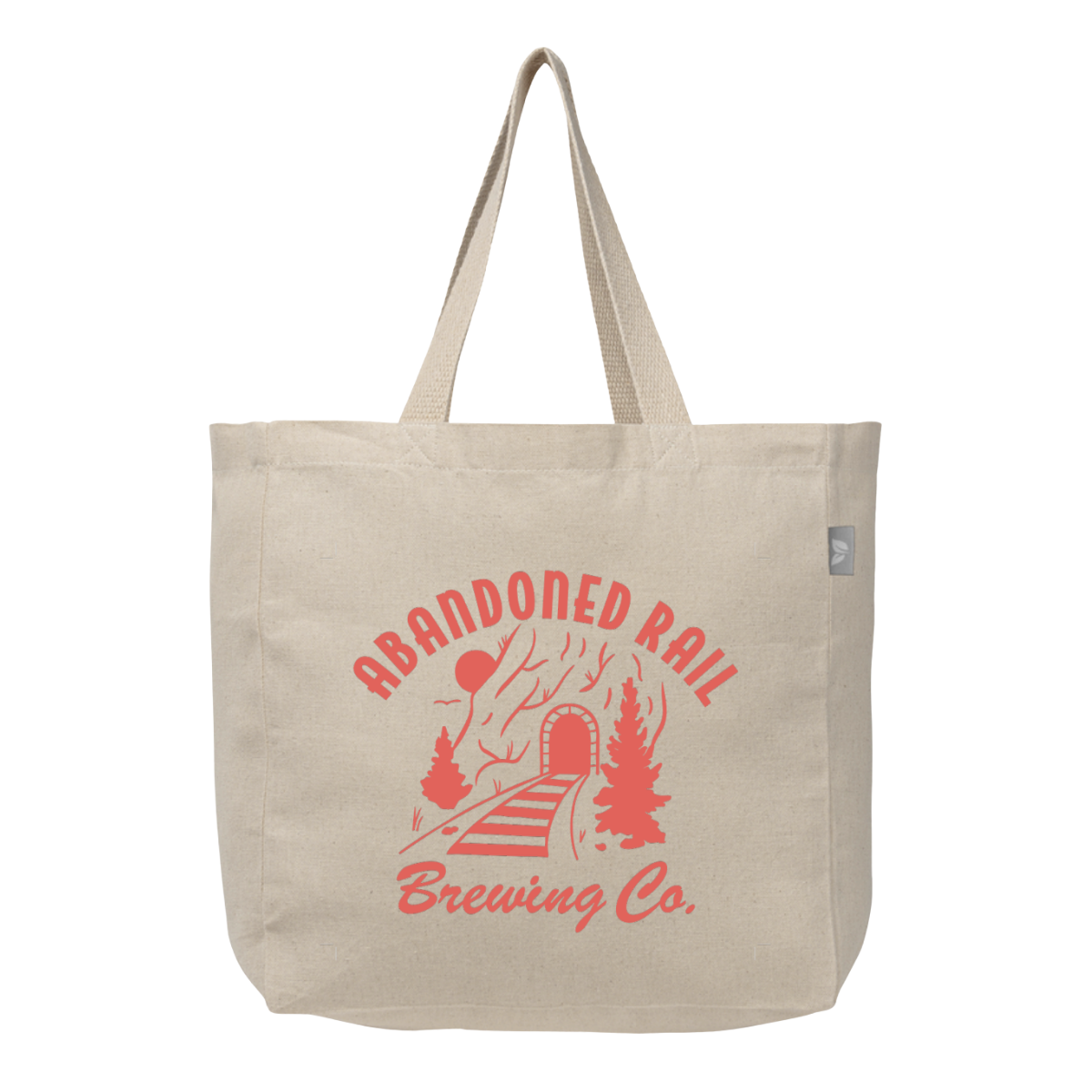A strong and durable tote. Fits a laptop n stuff. Made from recycled cotton.