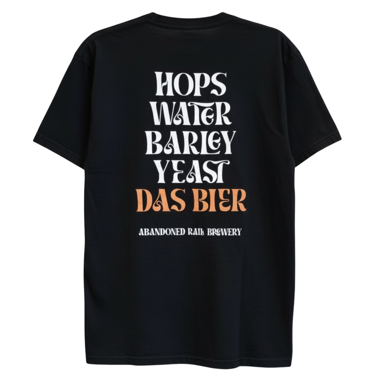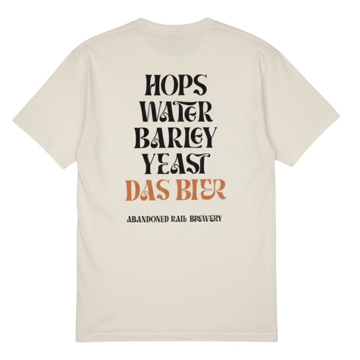 DAS BIER! Translates to 'THE BEER'!...Who knew?? You'll love this Heavyweight Ring Spun cotton shirt. Loose fitting, mega comfy. It also lists the ingredients of beer on the back - Reinheitsgebot if you will.